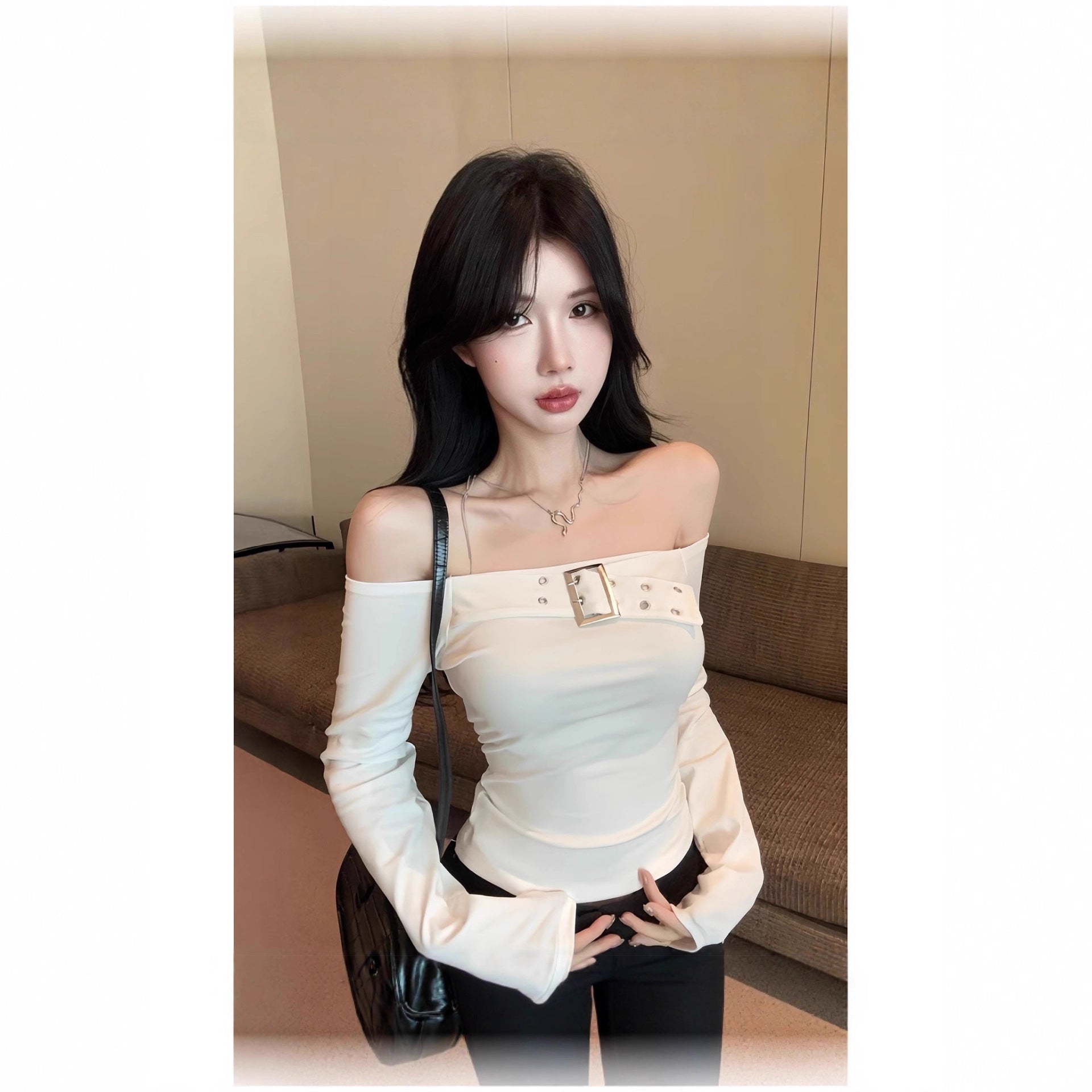 Sexy Off-Shoulder Long Sleeve T-Shirt for Women, Fitted and Revealing Shoulder Top